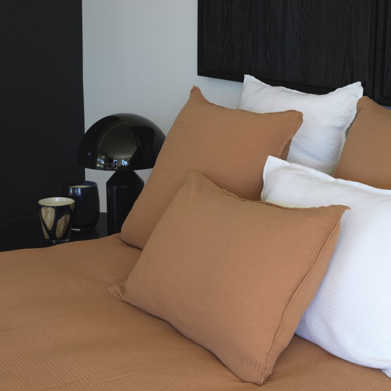 Taie d'oreiller en double gaze de coton terre cuite d'une douceur incroyable. Cette matière est douce et moelleuse, vous allez succomber à cette matière naturelle.